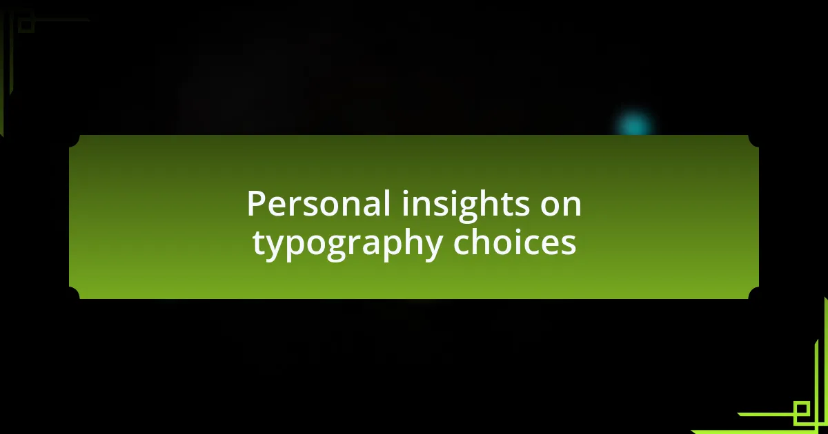 Choosing the right typography for a project can often feel overwhelming, but I’ve learned that trusting my instincts is crucial. For example, during a recent branding project, I gravitated towards a serif font that exuded warmth and professionalism. It wasn’t just about style; it evoked emotions that perfectly aligned with the brand’s identity. Have you ever felt that connection between type and the message it conveys?