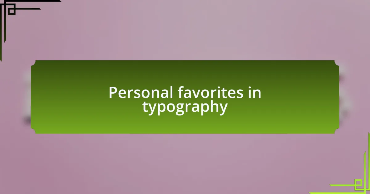 When it comes to personal favorites in typography, I am particularly fond of classic serif fonts. There’s something timeless about their structure that feels both authoritative and elegant. During a recent editorial design project, I chose a classic serif typeface for the headlines, and it brought a level of sophistication to the entire layout. It made me wonder, isn’t it fascinating how some fonts can instantly elevate the credibility of a piece?