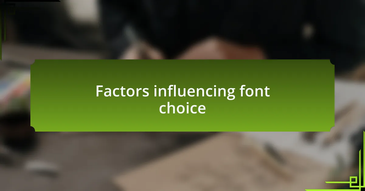 When it comes to font choice, one key factor is the target audience. I vividly recall working on a project for a children’s educational website where I opted for a playful, rounded typeface. It created a welcoming atmosphere that resonated with both kids and their parents. Have you thought about how your audience’s preferences might shape your own font selections?
