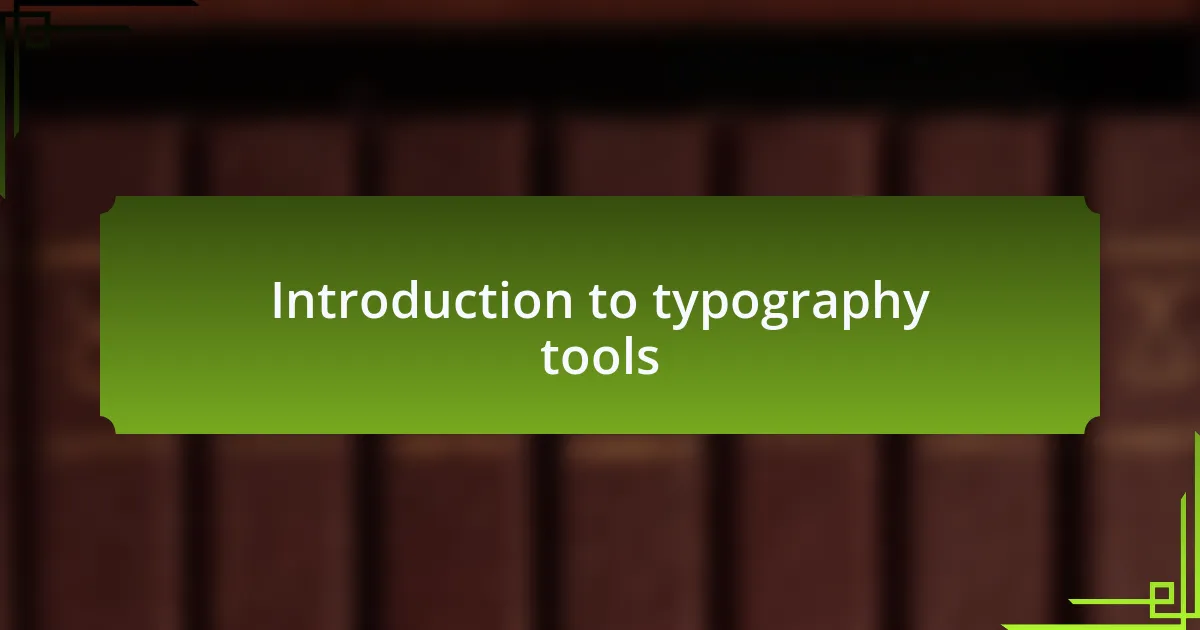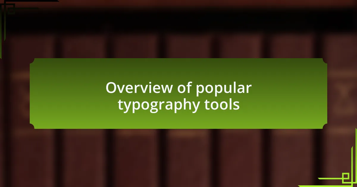 Typography tools are essential for anyone looking to enhance their designs and communicate effectively through text. I remember the first time I used a typography tool to create a personalized poster. The excitement of experimenting with different fonts and layouts taught me just how much impact typography can have on conveying a message.