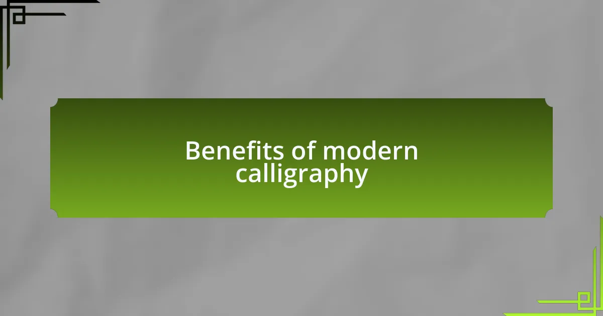 Moreover, modern calligraphy fosters a sense of community among enthusiasts. I recall joining an online group where I could share my work and receive constructive feedback. The encouragement from fellow calligraphers not only boosted my confidence but also inspired me to experiment with new techniques. It’s amazing how connecting with like-minded individuals can elevate your craft and create a shared sense of purpose.