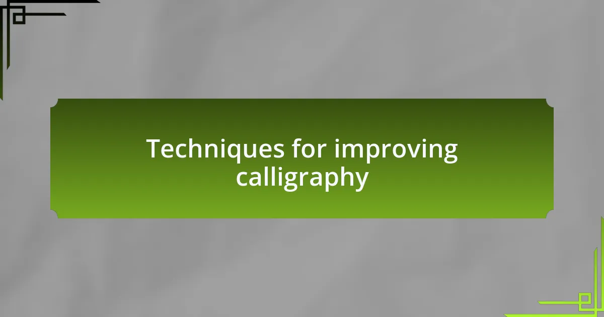 One of the most effective techniques I’ve discovered for enhancing my calligraphy is the warm-up exercise. Before I pick up my brush pen, I spend a few minutes doing basic strokes and flourishes. This little ritual not only warms up my hand but also helps me reconnect with the fluidity of movement. Have you ever noticed how much your writing improves when you’re fully in the zone?