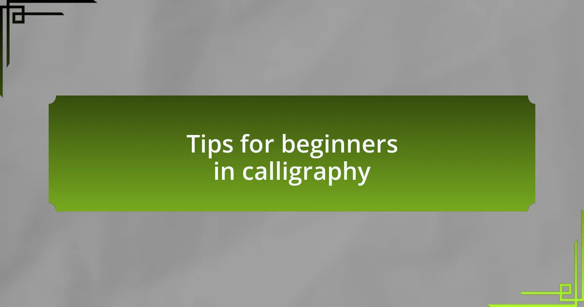 When starting out in calligraphy, one of the most important tips I can share is to practice regularly. Setting aside time each week to focus solely on your penmanship can yield incredible improvements over time. I remember when I committed to just ten minutes a day, and it felt like I was unlocking new levels of understanding with every stroke. Have you found that short, consistent practice tends to yield better results?