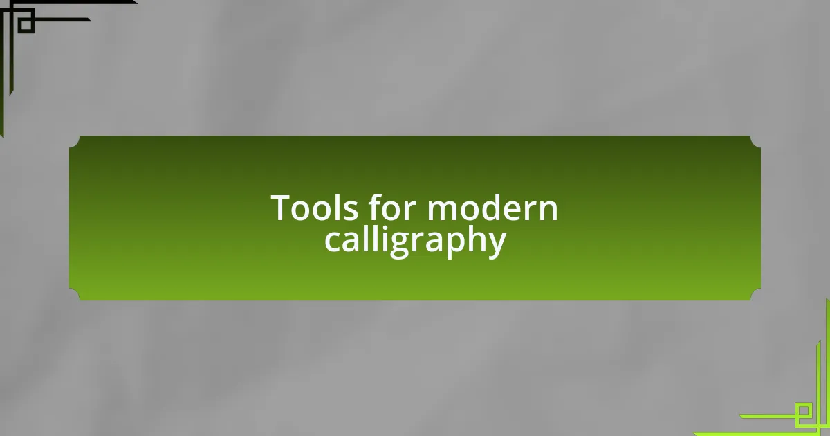 When it comes to tools for modern calligraphy, the right pen can make all the difference. Personally, I’ve fallen in love with brush pens; they feel so dynamic in my hand. The flexibility allows for beautiful variations in stroke weight, giving my letters a unique flair. Have you ever tried using a brush pen? It’s truly liberating and adds an organic touch to your writing.