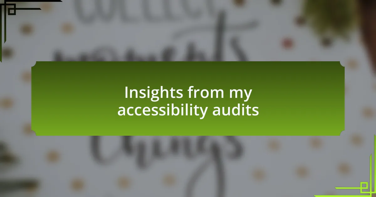 When conducting accessibility audits, one common issue that often stands out is inconsistent font usage throughout the website. I once worked on a project where multiple fonts were used for headings and body text, which left users feeling disoriented. It made me realize how crucial visual consistency is; it not only affects aesthetics but also how easily users can navigate the content. Have you ever felt lost while reading a bad layout? It’s frustrating, and it’s worth addressing.