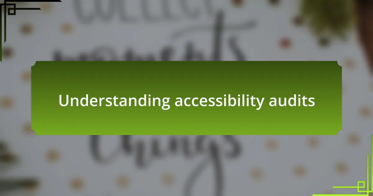 Accessibility audits are essential evaluations that assess how well a website meets accessibility standards, ensuring that users with disabilities can navigate and interact with content effectively. I remember the first time I conducted an accessibility audit; it felt like uncovering hidden barriers that I had previously overlooked. It’s a humbling experience to realize that something as simple as font size or color contrast can profoundly impact someone’s ability to engage with a site.