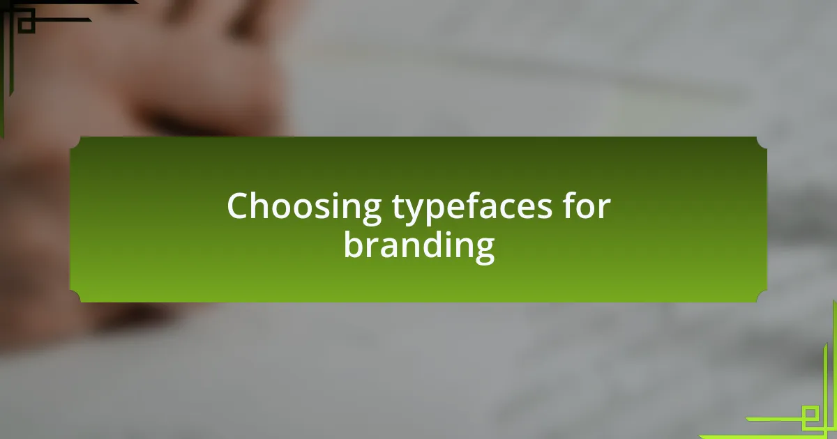 When selecting typefaces for branding, I think about how a font can evoke emotions and establish personality. For instance, I once collaborated with a local bakery that wanted a warm and inviting feel. After extensive consideration, I chose a rounded serif typeface that felt friendly and approachable, perfectly embodying the essence of freshly baked goods. Isn’t it fascinating how a simple font choice can create an entire brand atmosphere?