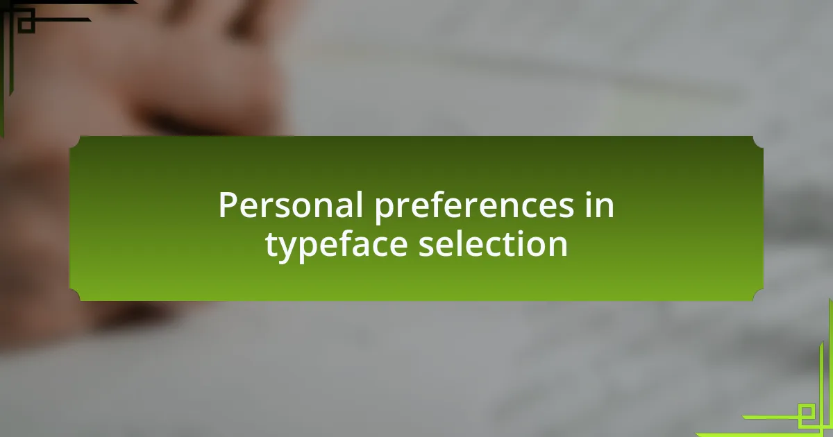 When it comes to personal preferences in typeface selection, I find myself gravitating towards fonts that resonate emotionally. For instance, I recall a project where I wanted to project elegance and sophistication for a fashion brand. I settled on a delicate serif typeface, and the instant connection it created with the brand’s aesthetic was thrilling. Do you ever feel this rush when a typeface aligns with your vision?