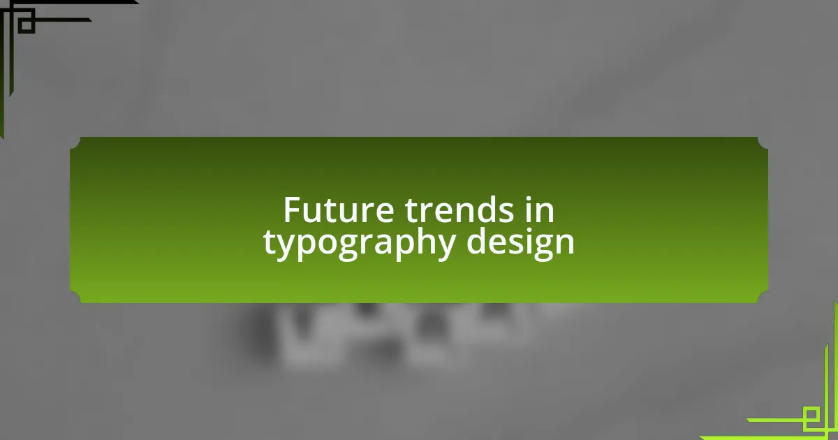 Additionally, I’ve explored how accessibility is becoming increasingly vital in typography design. While working on a project for a nonprofit, I focused on legible fonts to ensure inclusivity for all readers. Watching individuals navigate the website with ease reminded me of the fundamental role we play as designers in creating spaces where everyone feels welcomed. Isn’t it exciting to think about how future typography trends can shape not just aesthetics, but also accessibility and empathy in design?