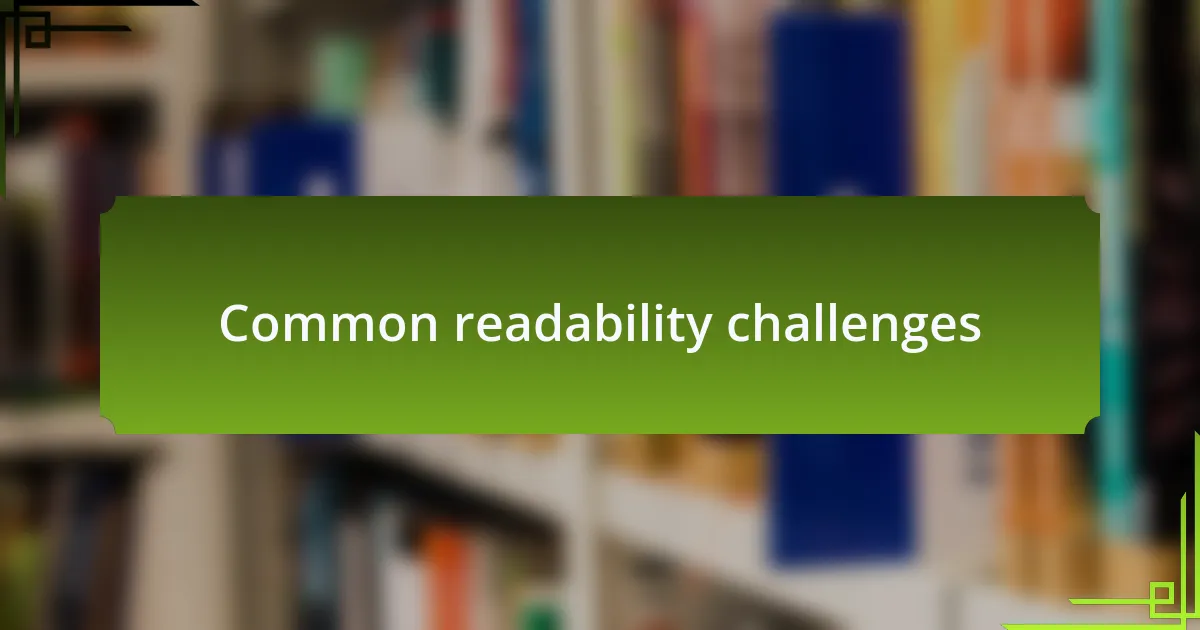 One of the most common readability challenges I’ve encountered is overcrowded text. Early in my design journey, I created a webpage filled with long paragraphs all crammed together, assuming the content would be consumed with ease. The feedback was shocking; users felt overwhelmed and didn’t even finish reading. This experience taught me the importance of breaking up text into digestible chunks. It begs the question: how can we expect our audience to engage when we don’t offer them the space to breathe?