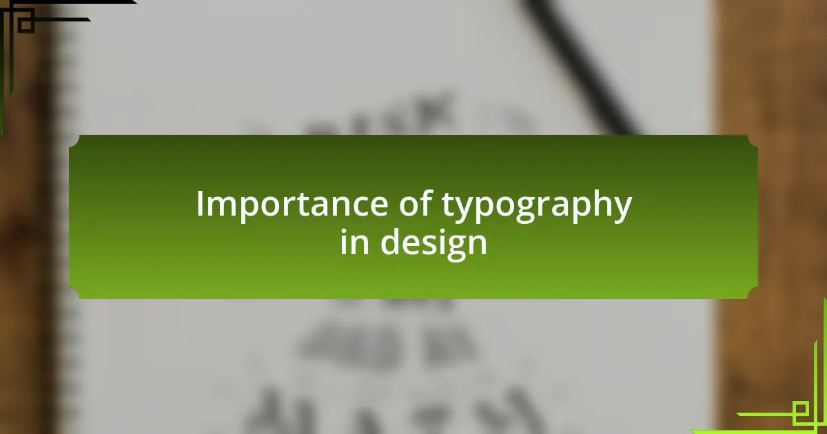 The significance of typography in design cannot be overstated; it’s truly the backbone of effective communication. I once encountered a stunning website that completely captivated me, but once I began to read, the intricate and small font left me squinting in frustration. It made me realize how pivotal typography is—it can either draw you into a world of content or push you away into confusion.
