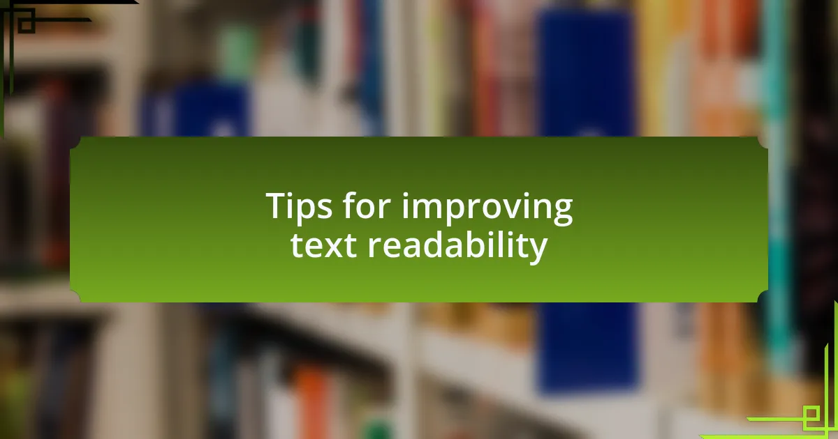 When it comes to improving text readability, one of the first things I’ve learned is the importance of line length. I recall a project where the lines were too long, and my eye kept wandering, making it hard to focus. Research shows that keeping line lengths between 50 to 75 characters enhances readability significantly. Have you noticed how easier it is to read short lines compared to long blocks of text? This small adjustment can really make a difference.
