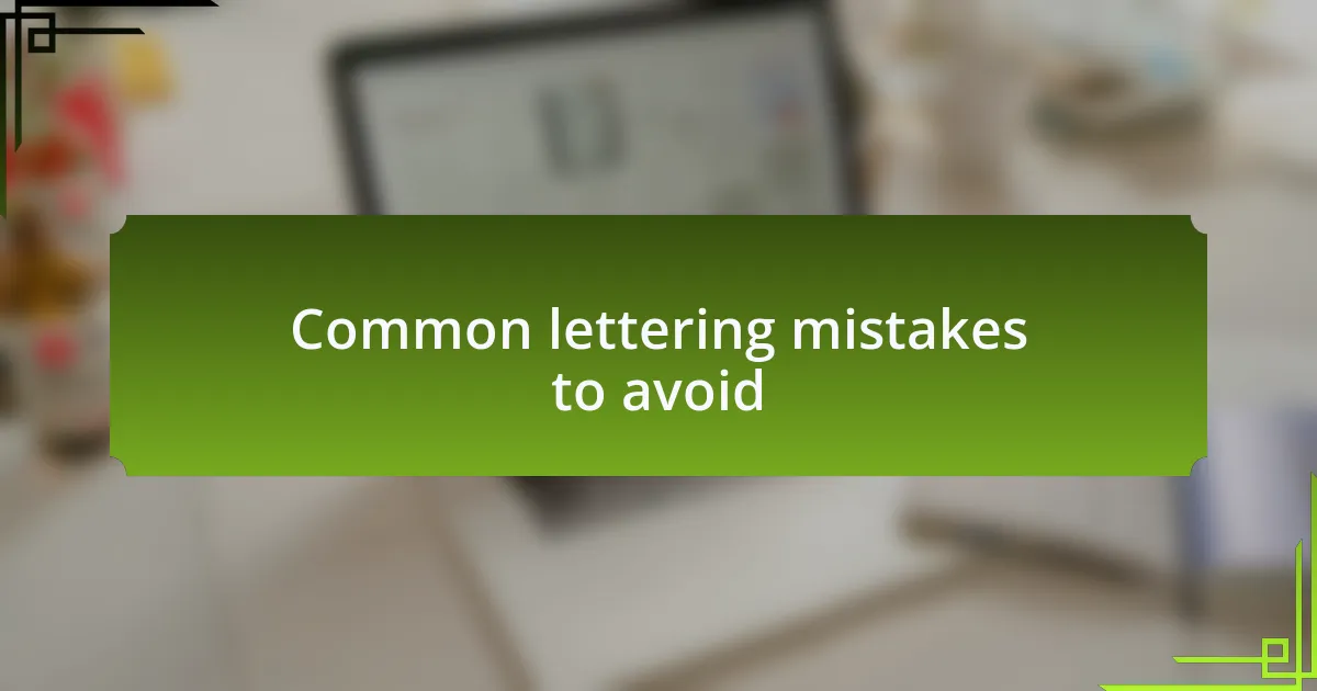 Another frequent pitfall is neglecting to consider contrast between the background and the lettering. There was a time when I used a light gray font on a white background—talk about invisible! The moment I switched to a bolder color, the text suddenly popped, making it not just legible but also striking. It’s a reminder that visibility can make or break a design; is your text truly standing out?