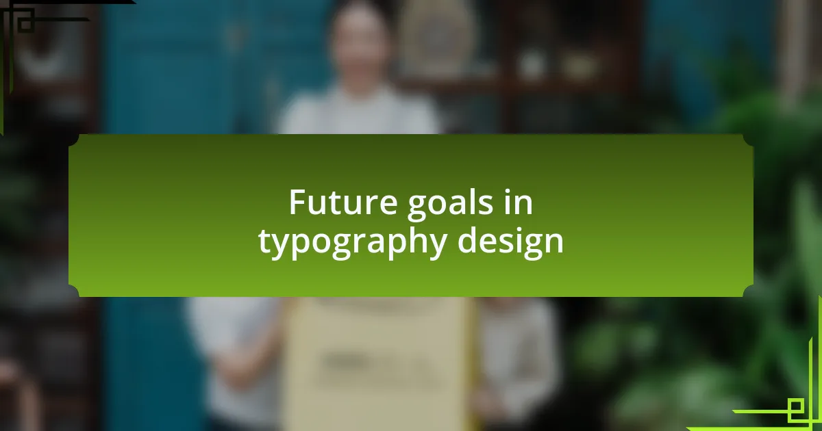 Setting my sights on future goals in typography design excites me immensely. As I think about my next steps, I’m drawn to the idea of merging digital tools with traditional techniques. I envision projects that embrace both worlds, allowing for a rich blend that speaks to the heritage of hand lettering while harnessing the capabilities of modern technology. Have you ever tried combining different approaches? It’s like discovering a new palette to paint with.
