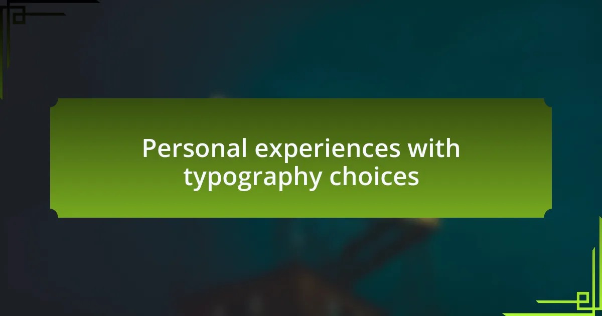 When I think about typography choices, I remember a particular project where I experimented with hand-drawn fonts. Initially, I was unsure if they would resonate with users, but the response was incredible. People felt a genuine connection, as if they were interacting with a friend rather than just a brand. Isn’t it interesting how something as simple as font style can create that sense of intimacy?