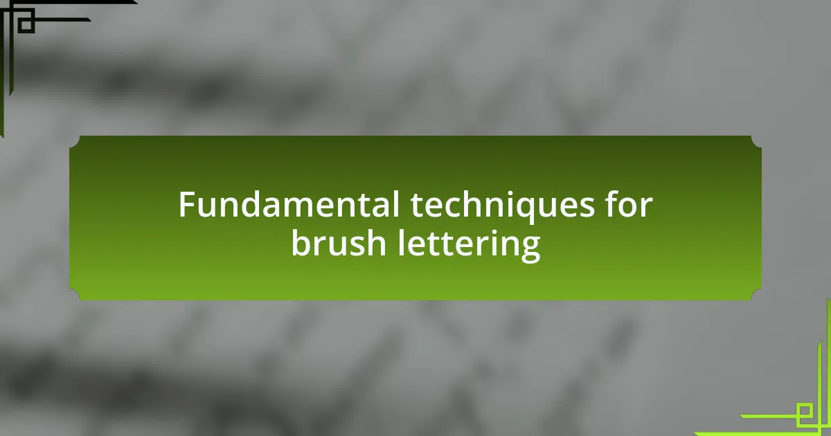 Brush lettering requires a balanced approach to techniques, starting with understanding pressure control. I vividly remember my early days when I would press too hard, resulting in uneven strokes. Finding just the right amount of pressure is essential; it’s what gives each letter its character. Can you recall your own experience adjusting to this key part of the craft?