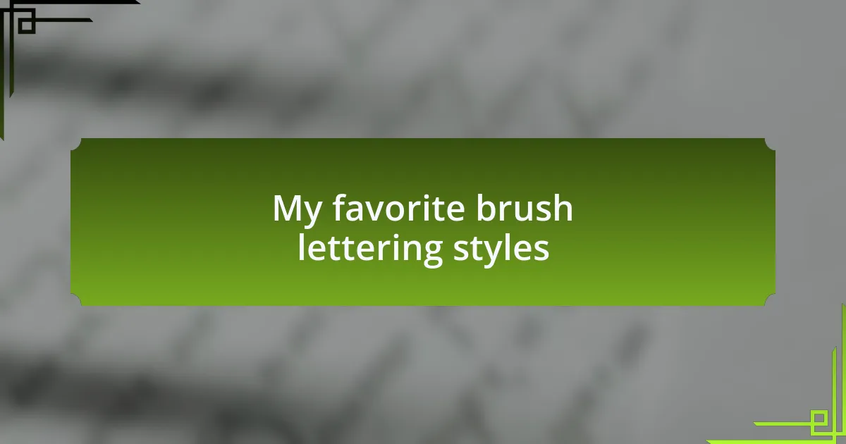 One of my favorite brush lettering styles is the modern calligraphy aesthetic. I love how it combines fluid strokes with playful variations in pressure, resulting in an elegant yet approachable look. The first time I tried this style, I was blown away by how it allowed for personal expression—each letter felt like a dance, revealing something unique about my creative voice. Have you ever felt that thrill when a particular style suddenly clicks with your artistic identity?