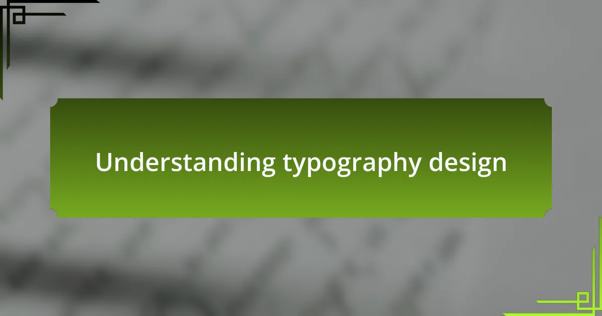 Typography design is the art of arranging type to make written language legible, readable, and visually appealing. I recall my first typography class where we explored the importance of font choice; it became clear that the right typeface can evoke feelings and set the tone for the entire piece. Have you ever noticed how a playful font can make a message feel lighthearted, while a bold serif can command attention?