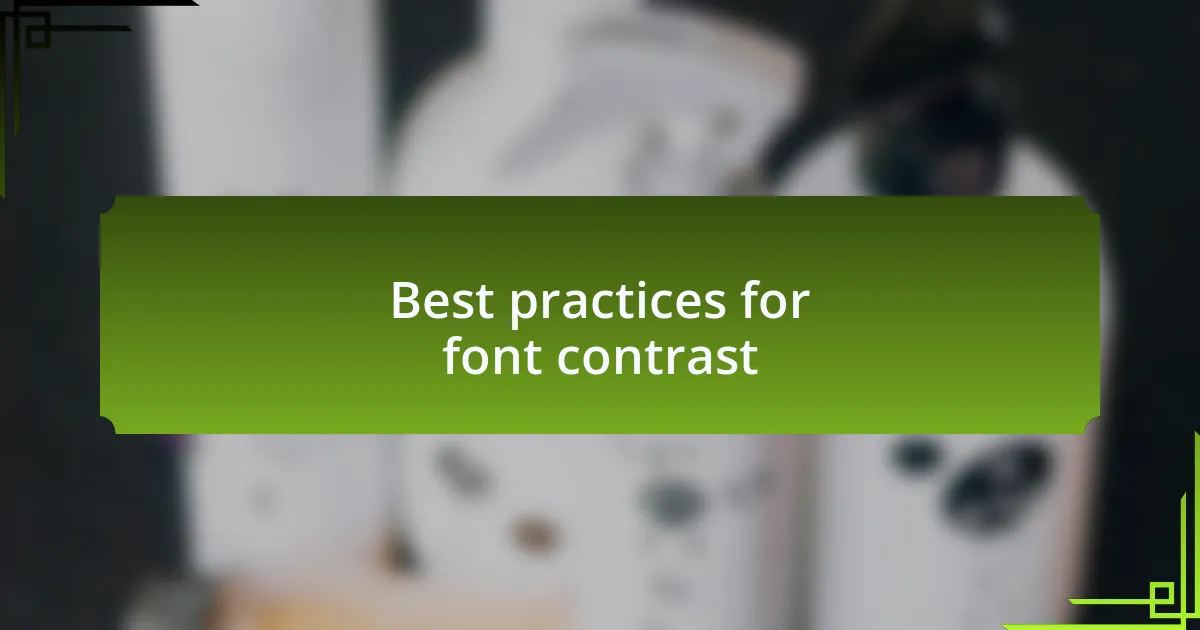 One best practice for achieving effective font contrast is to prioritize color combinations that avoid common pitfalls. For instance, I once implemented a vibrant blue text on a bright yellow background for a children’s educational site. The cheerfulness was a hit, but I didn’t account for how some shades, even though contrasting, could strain the eyes when read for long periods. I learned that while bold colors can attract attention, they can also lead to visual fatigue. How do you think your audience would feel staring at that kind of combination for too long?
