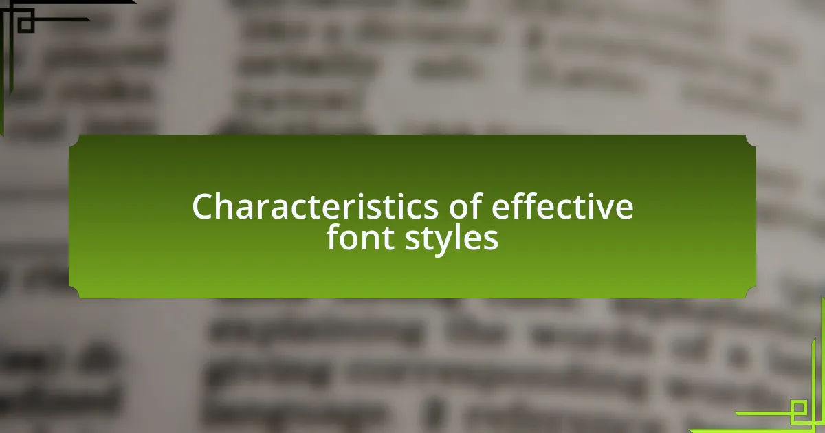 When I choose a font, clarity is always at the forefront of my mind. I still recall a straightforward project where I used a bold, well-defined typeface that made my message pop— each word felt like it was standing out and demanding attention. This experience reinforced my belief that effective font styles should prioritize legibility above all, ensuring that the audience can easily absorb the information presented.