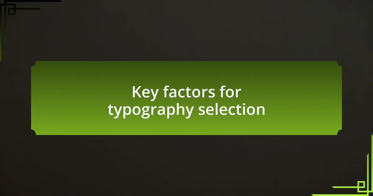 Another factor to consider is the tone of your message. I remember launching a branding project for a local café and initially chose a modern sans-serif typeface. It felt too stark for the warm, inviting atmosphere I wanted to convey. After some trial and error, I switched to a friendly serif font that captured the essence of the café’s cozy vibe perfectly. It made me reflect: does your typography communicate the right emotion to your audience?