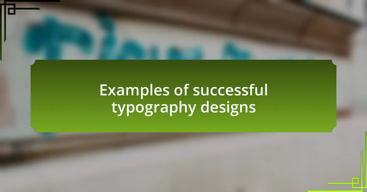 One standout example of successful typography design that I always admire comes from the website of a popular tech brand. They use a bold sans-serif font for headings, which immediately captures attention. I remember the first time I landed on their site; the clarity of their typography made me feel excited about their products. How many times have you clicked away from a site because you struggled to read the text?