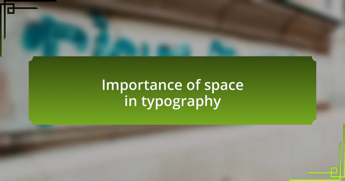 Space in typography is not merely a design choice; it’s a silent guide for the audience. When I reduced clutter on my blog by eliminating unnecessary elements, the typography stood out in a way that communicated essential ideas effectively. It’s fascinating how a careful balance of space encourages engagement and invites interaction. How might your design shift if you prioritized spatial arrangements as much as font selection?