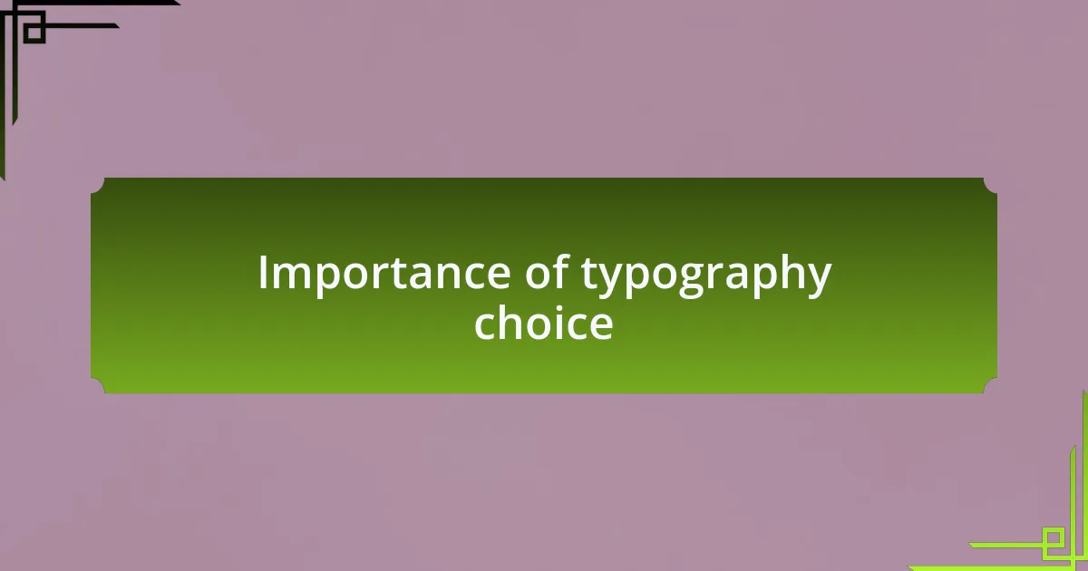 Choosing the right typography is crucial because it shapes not just how information is presented, but how it is perceived. I recall a time when I worked on a campaign that used a bold, playful font for a children’s brand. The moment I switched to a more whimsical typeface, the entire vibe changed, making it feel instantly more inviting. It struck me how font choice can create an immediate emotional response that resonates with the target audience.