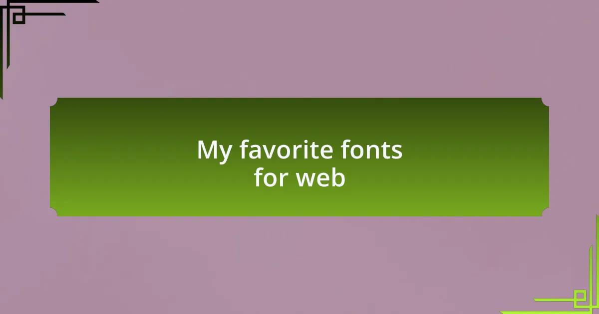 When it comes to my favorite fonts for the web, I’ve always been drawn to Google Fonts, particularly ‘Montserrat.’ Its geometric style is modern and versatile, making it ideal for both headers and body text. I still remember the first time I used Montserrat in a branding project; it instantly gave the design a polished touch that felt fresh yet timeless. Have you ever discovered a font that completely transformed your layout? For me, that was Montserrat.