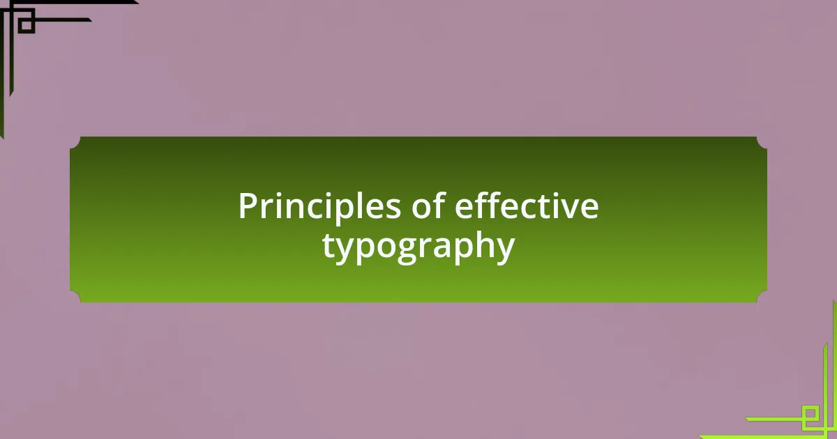 One of the core principles of effective typography is hierarchy. I remember working on a blog layout where I had to convey information at a glance. By adjusting font sizes and weights, I made headlines prominent while keeping body text readable. This distinction guided readers through the content effortlessly. Have you ever noticed how a simple size change can make the most critical messages pop out? It’s fascinating to see how hierarchy can transform your design and help convey your story.