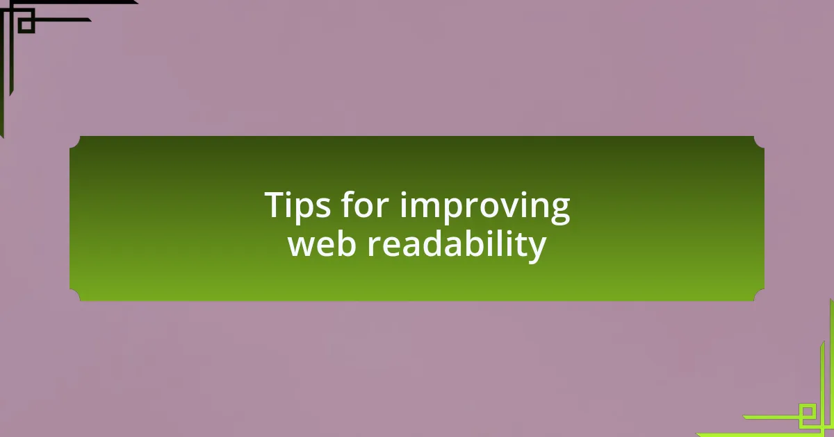 One crucial tip for improving web readability is choosing font sizes wisely. I remember when I first embarked on designing my portfolio site; I initially opted for a smaller font to fit more content. However, it quickly became clear that visitors were squinting at the screen. Since then, I’ve adopted a minimum font size of 16 pixels for body text. Isn’t it surprising how a simple adjustment can keep readers engaged and reduce eye strain?